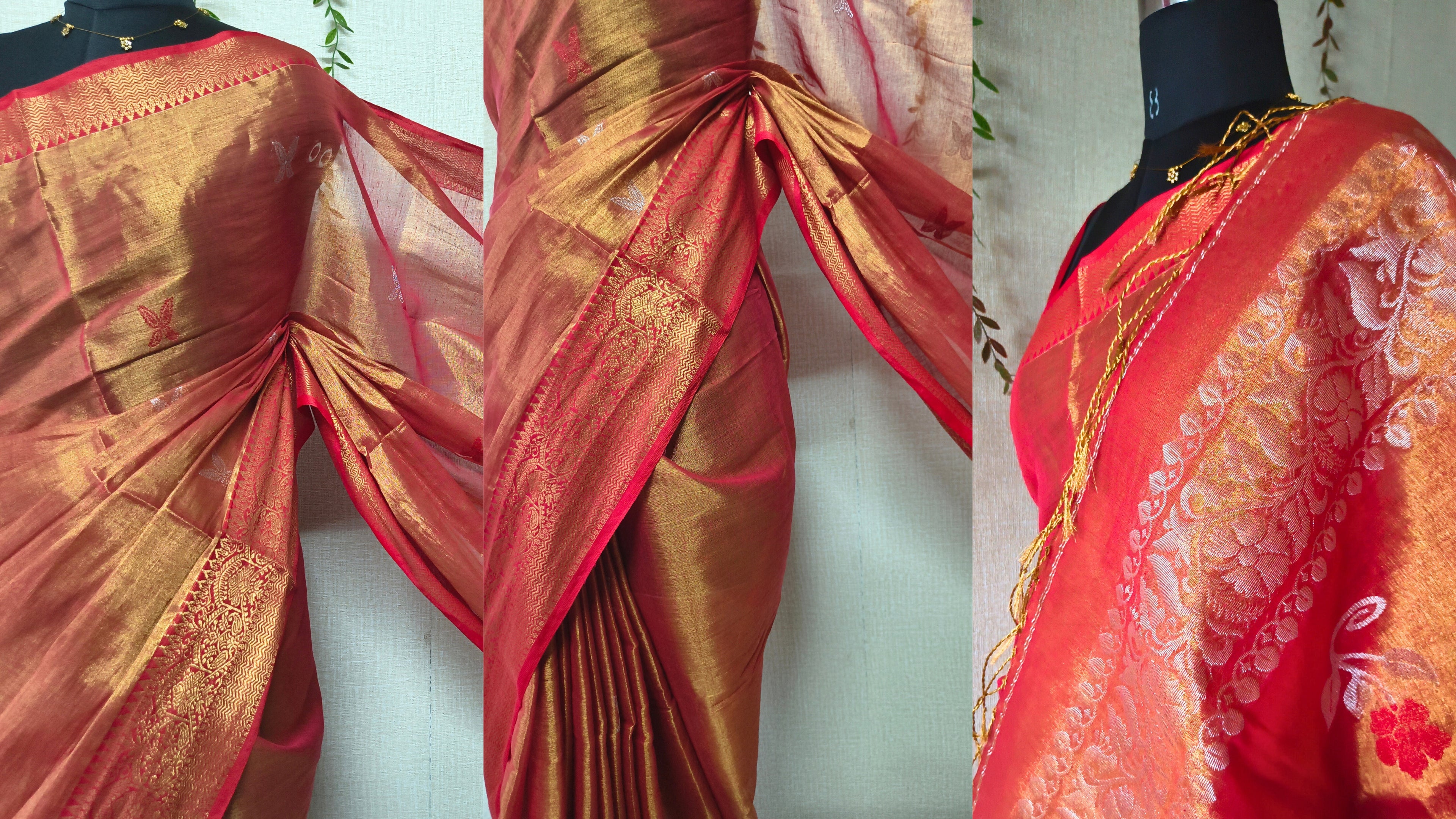 Sale - 14% OffHandloom Tissue Linen with Jamdhani Weaving Buttas - Crimson
