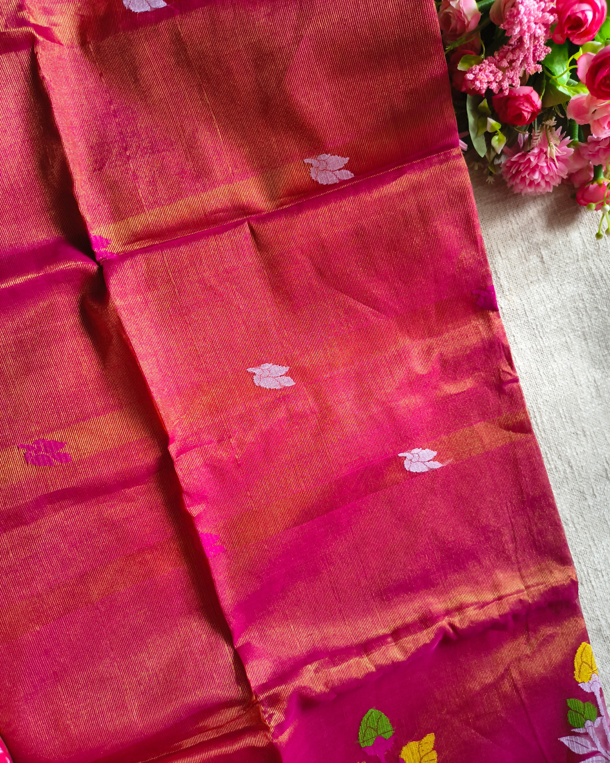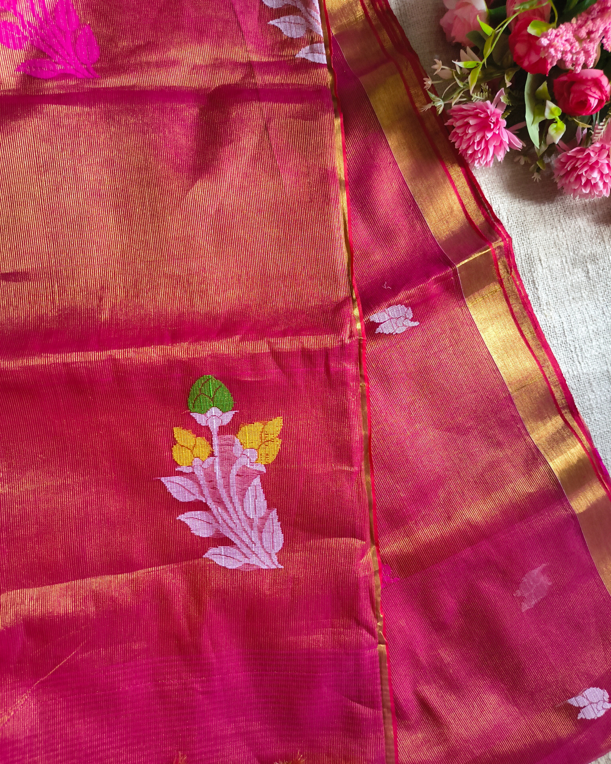 Handloom Tissue Linen with Jamdhani Weaving Buttas - Rani Pink