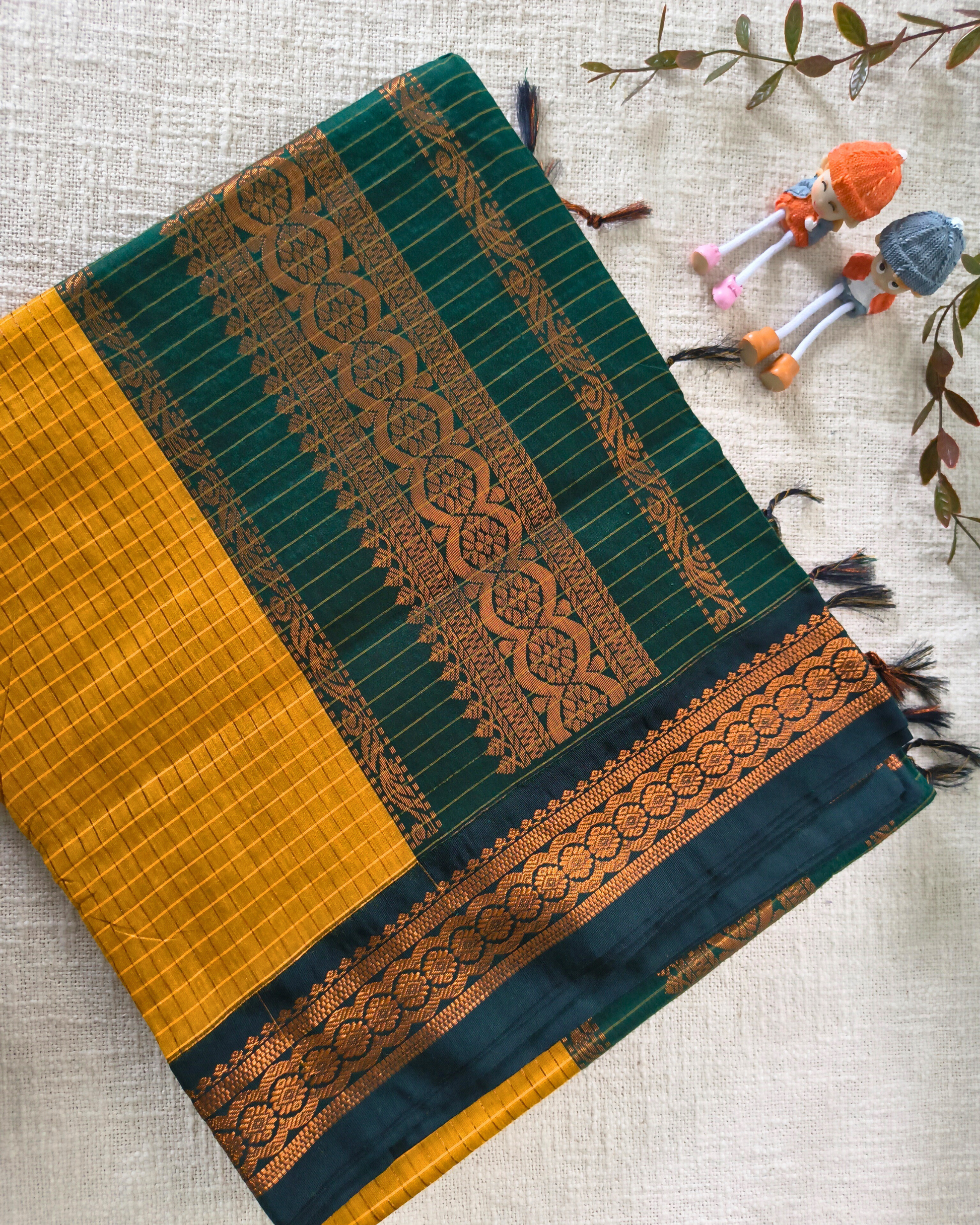 Premium Kalyani Cotton checked with Zari Border - Yellow