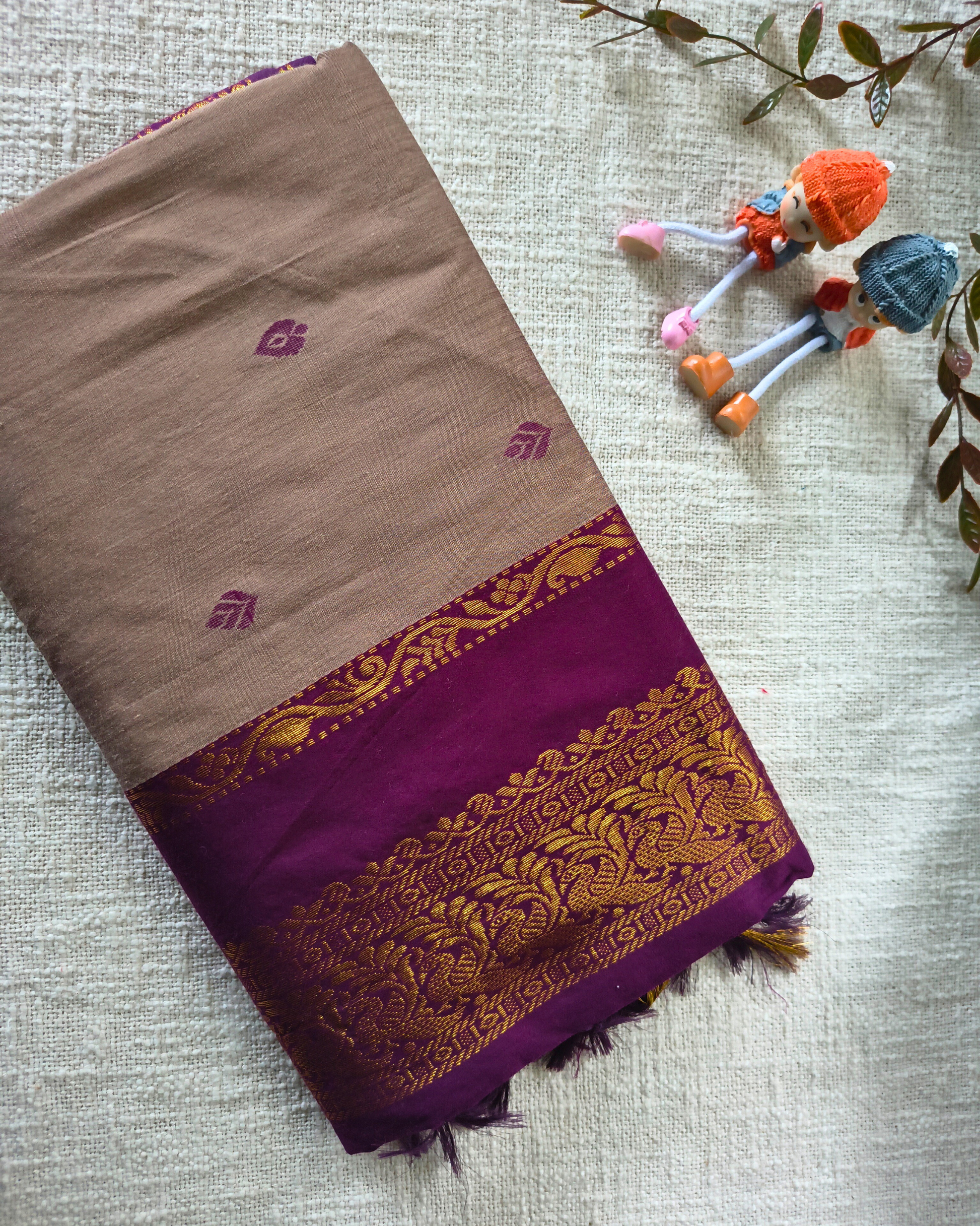 Premium Kalyani Cotton Saree with Butta - Mocha Rose