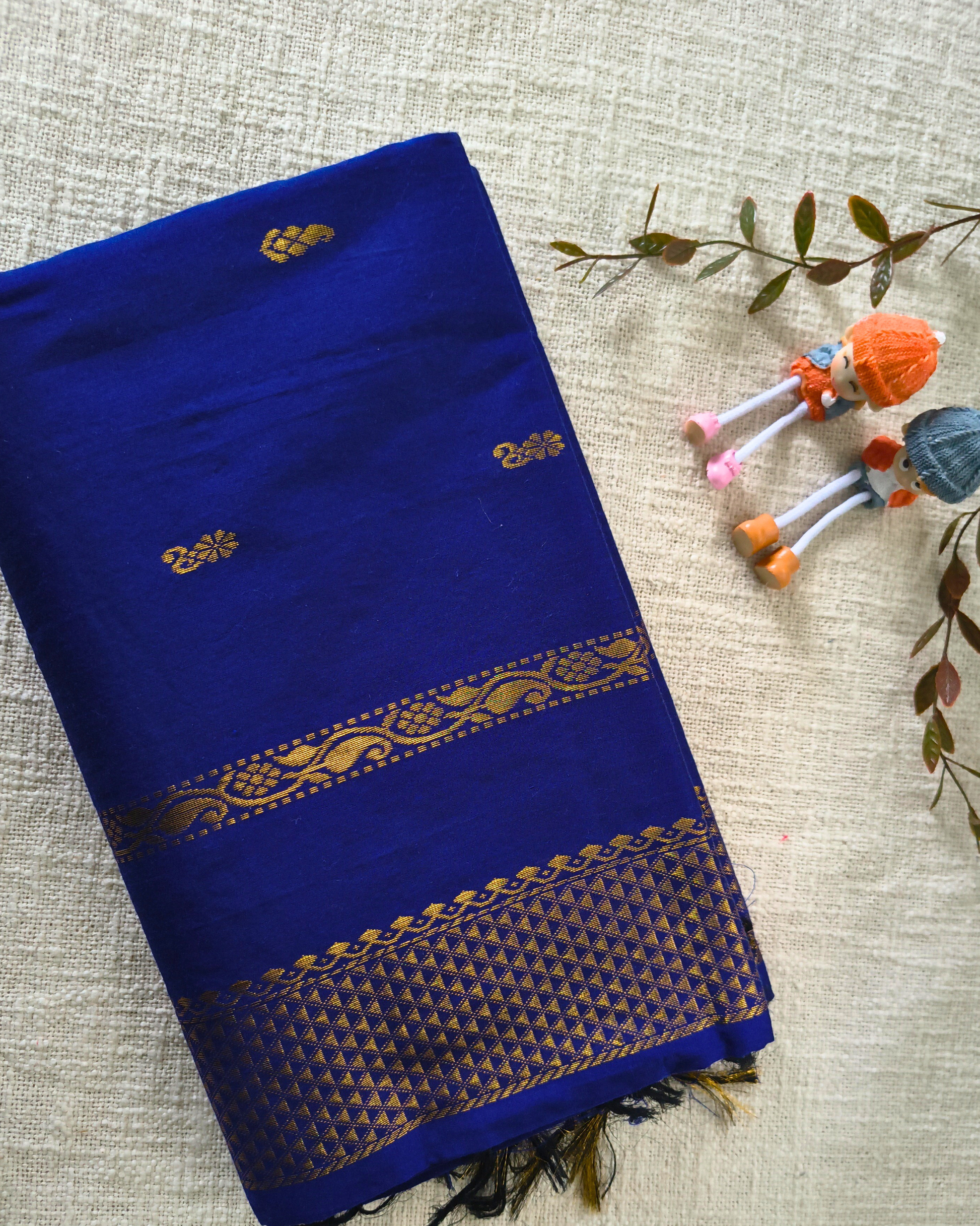 Premium Kalyani Cotton with Butta Monochromatic - Blue