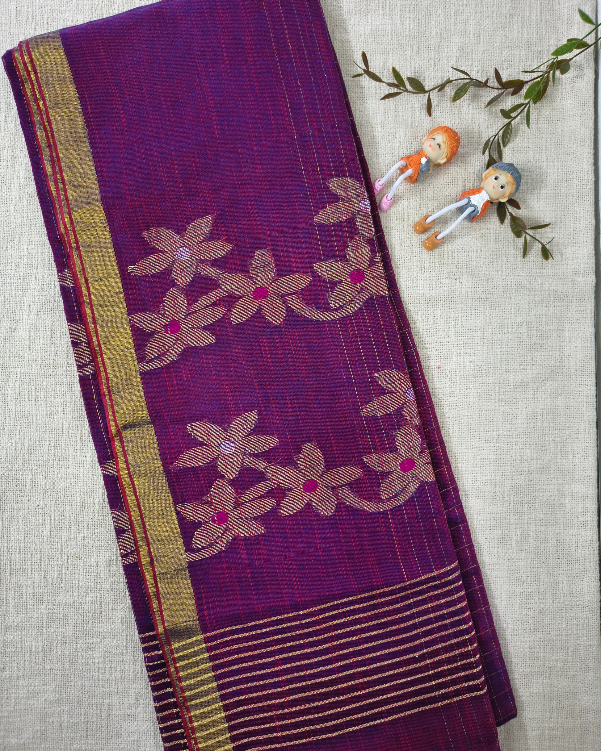 Experience understated luxury with our 120-count Linen by Linen Handloom Saree, a timeless blend of elegance, comfort, and craftsmanship.