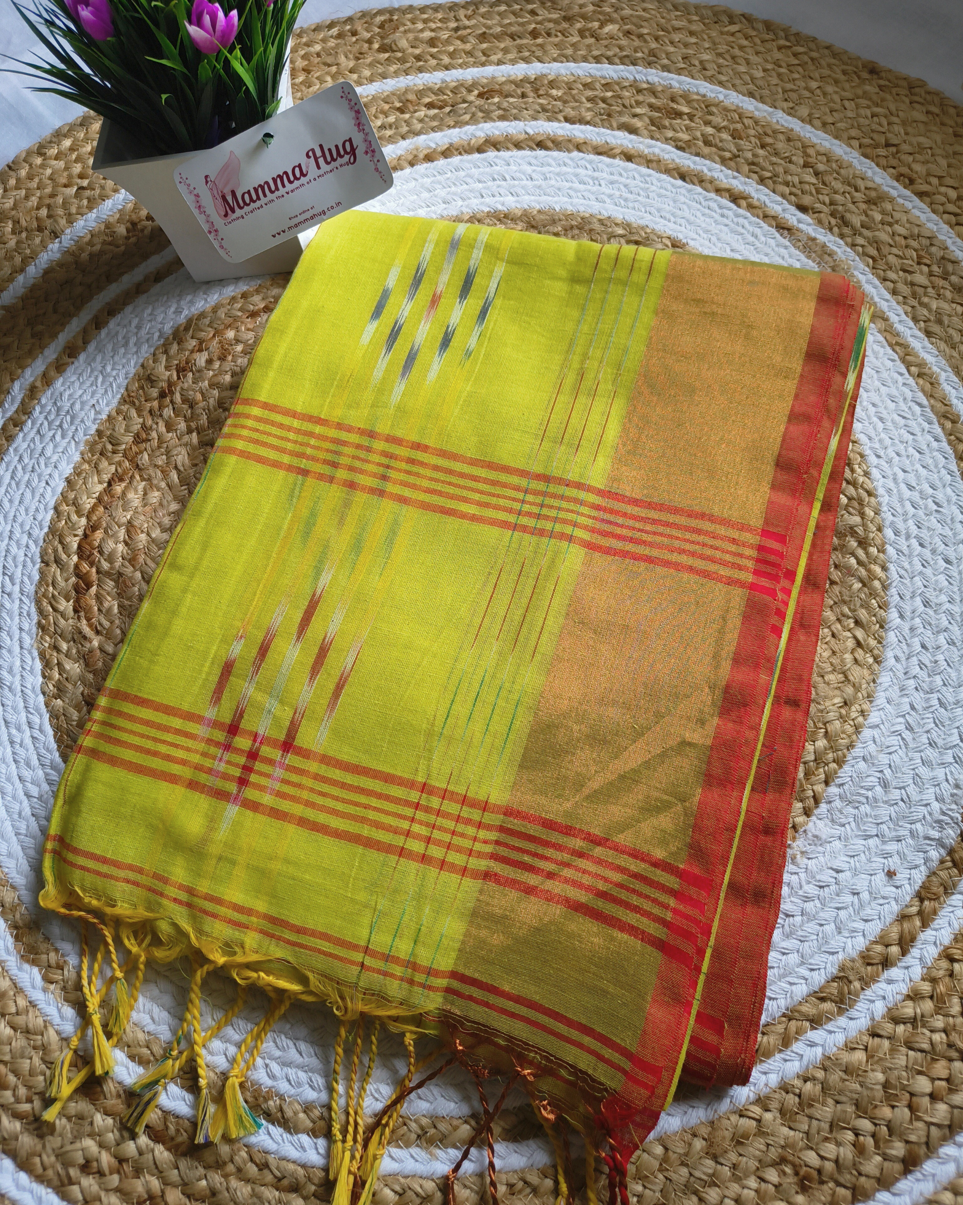 Golden saree that's a must buy for your wardrobe and can be styled for multiple occasions with grate ease and comfortable for longtime wear or even in a sunny weather, as all the 4 sarees that I got from mamma hug r very light weight and look pretty elegant and the showstopper is this golden beauty saree
