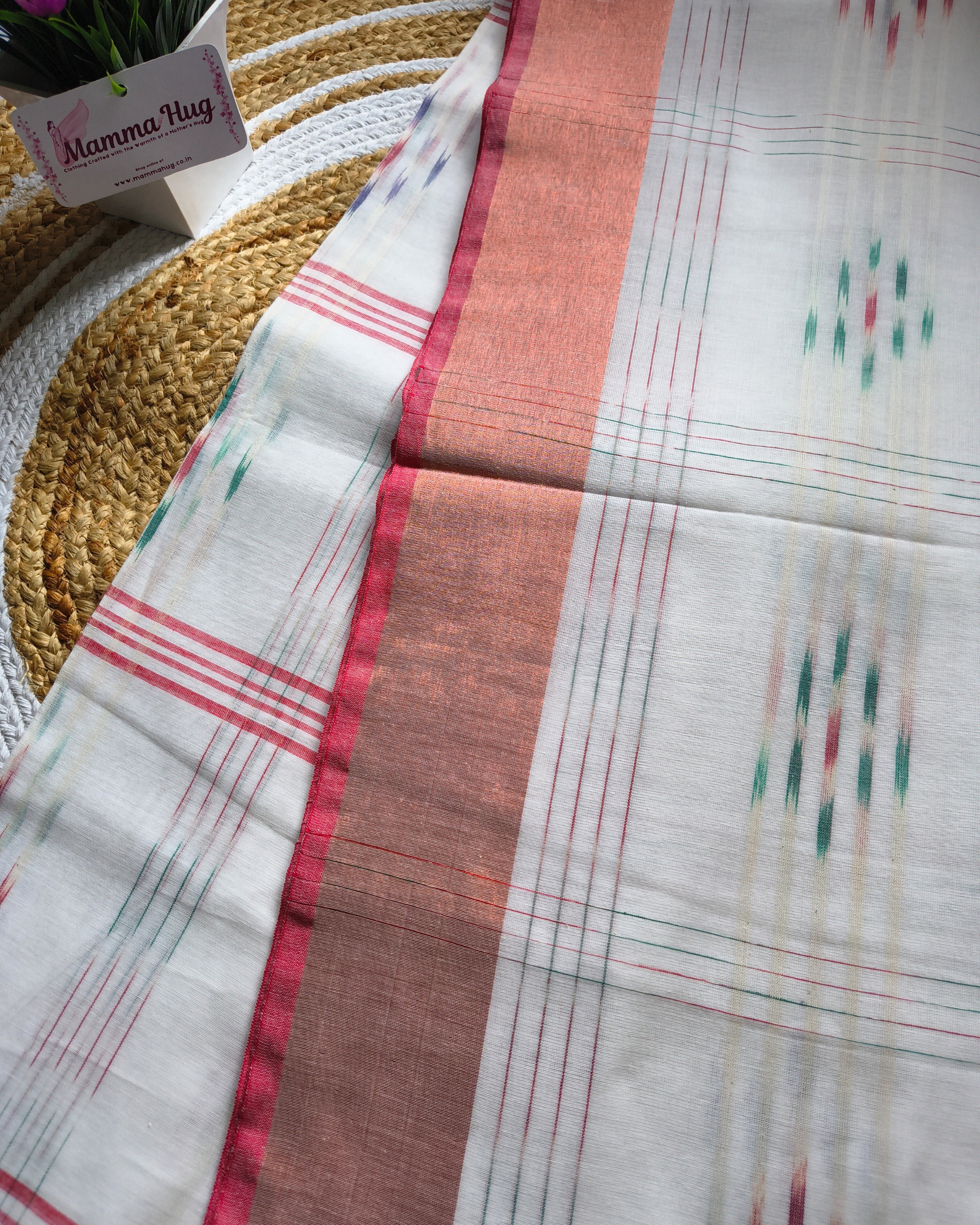 Pure Cotton Handloom Saree with Ikkat Design - White