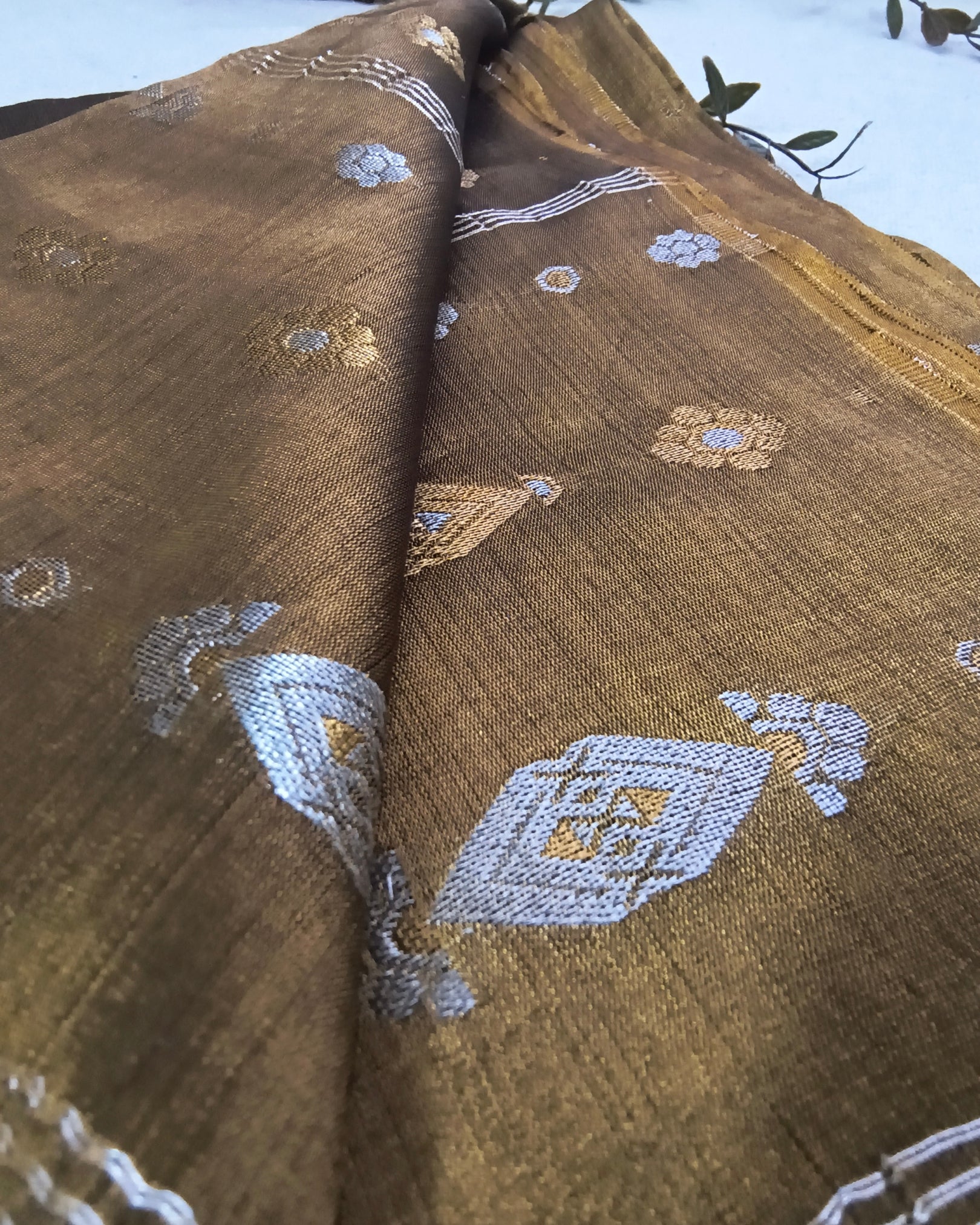 Soft Linen Tissue Saree with Golden Silver Zari weaving - Golden Brown